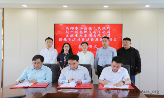 5月13日上午,善能生态集团、高邮市汤庄镇人民政府、扬州新奥燃气有限公司举行供热管道投资建设及运营项目合作框架协议签约仪式。高邮市汤庄镇党委书记杨芹芹,党委副书记、镇长乔元江,人大主席张海军,副镇长谭海琴,善能生态集团权属高邮公司总经理王承国,扬州新奥燃气有限公司总经理周锦出席签约仪式。