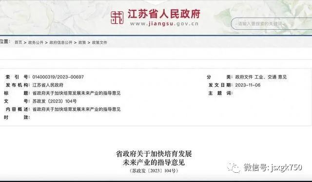 未来产业代表新一轮科技革命和产业变革方向,对未来经济社会发展具备重大引领和变革作用。哪些是江苏将重点培育的“未来产业”?政府部门将有哪些利好政策?11月9日,江苏省政府公开关于加快培育发展未来产业的指导意见。