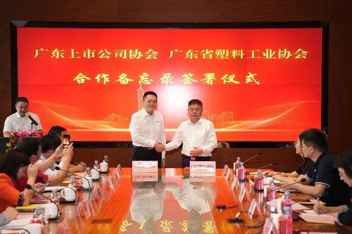 随后,广东上市公司协会王东华会长、广东省塑料工业协会李建军会长代表协会签署合作备忘录。双方将创新发挥社会组织平台功能作用,充分利用各自业务领域资源和优势,加强协作协同,在党的建设、信息共享、企业服务举措、行业发展、利用资本市场、调查研究等方面形成工作合力,不断提升会员服务效能,促进企业可持续发展。