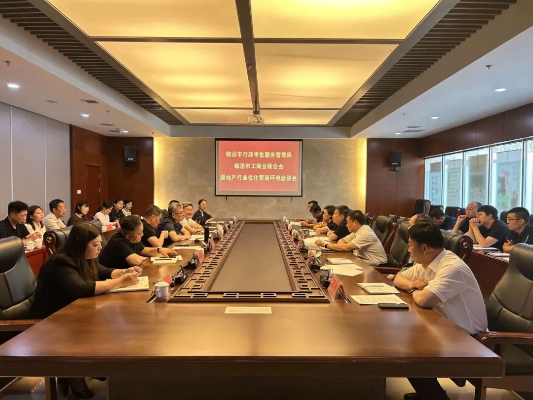 5月17日上午,临汾市行政审批服务管理局、临汾市工商业联合会共同召开房地产行业优化营商环境座谈会。市行政审批服务管理局党组书记、局长张宁红及局班子成员、市工商业联合会主席解建国出席会议,房地产行业协会会长任建辉及副会长、会员单位共计15家企业参会,市行政审批服务管理局相关科室列席会议。