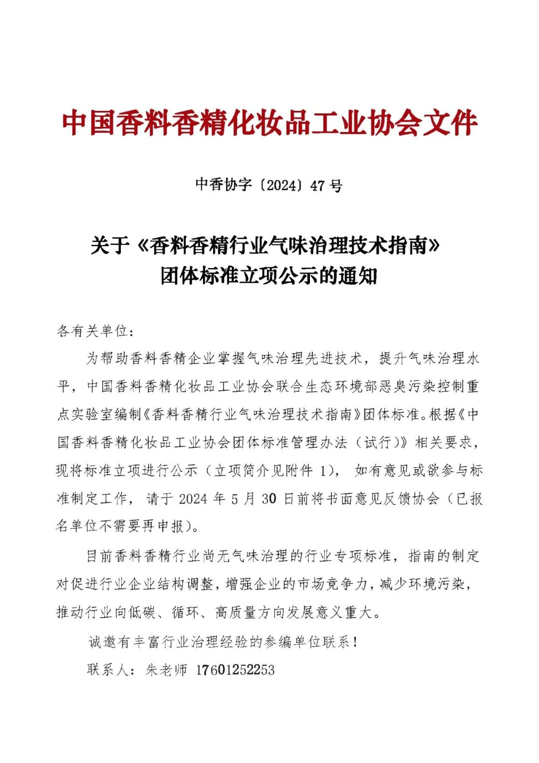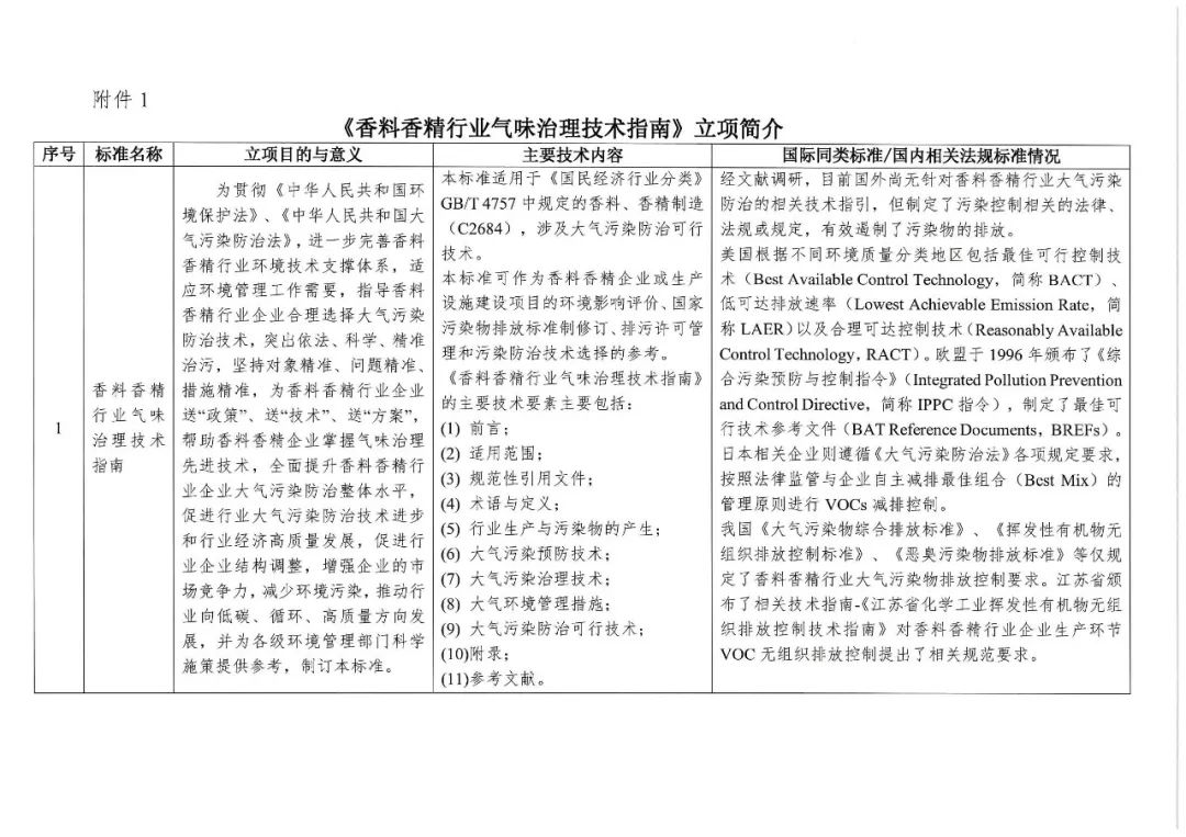 为帮助香料香精企业掌握气味治理先进技术,提升气味治理水平,中国香料香精化妆品工业协会联合生态环境部恶臭污染控制重点实验室编制《香料香精行业气味治理技术指南》团体标准。根据《中国香料香精化妆品工业协会团体标准管理办法(试行)》相关要求现将标准立项进行公示(立项简介见附件1),如有意见或欲参与标准制定工作,请于2024年5月30日前将书面意见反馈协会(已报名单位不需要再申报)。