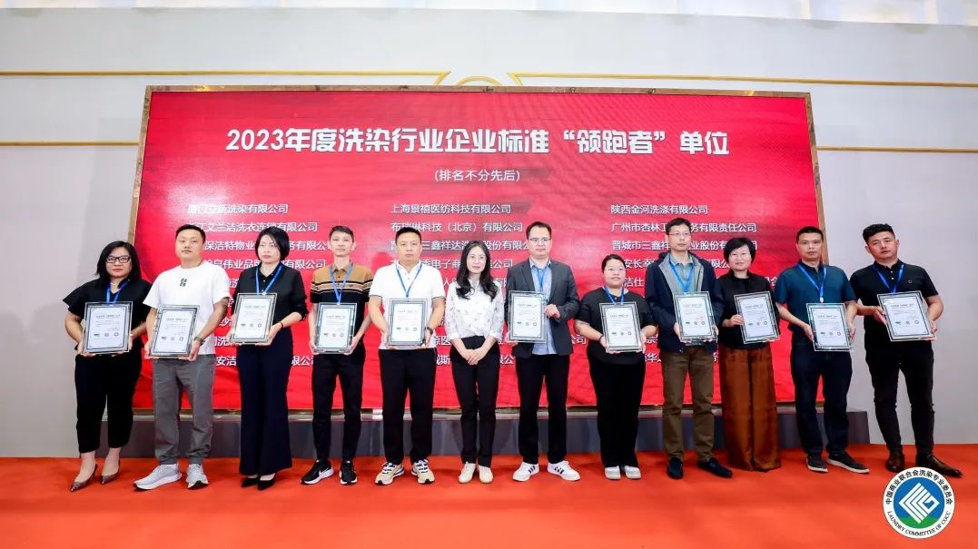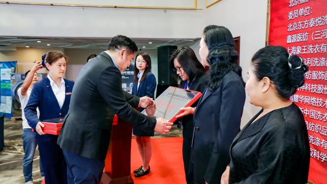 ▲图为:获颁全国洗染标准化技术委员会委员单位等三项荣誉