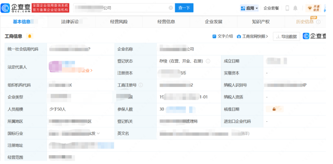 企查查查询到的公司规模