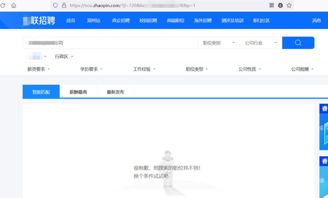 总体来讲规模确实小,搜集该公司的网站信息根本搜集不到,然后查询了一下招聘网站,比较讽刺的是这个公司竟然没有招聘讯息,某联招聘没: