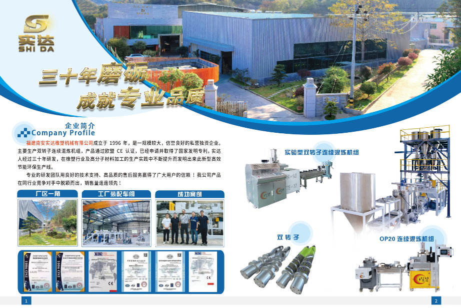福建南安实达橡塑机械有限公司成立于1996 年,是一规模较大,信誉良好的私营独资企业。主要生产双转子连续混炼机组,产品通过欧盟CE 认证,已经申请并取得了国家发明专利。实达人经过三十年研发,在橡塑行业及高分子材料加工的生产实践中不断提升而发明出来此新型高效节能环保生产线。