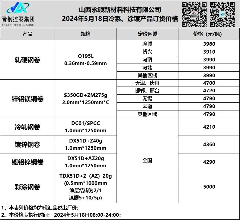 山西永硕冷轧镀锌彩涂报价