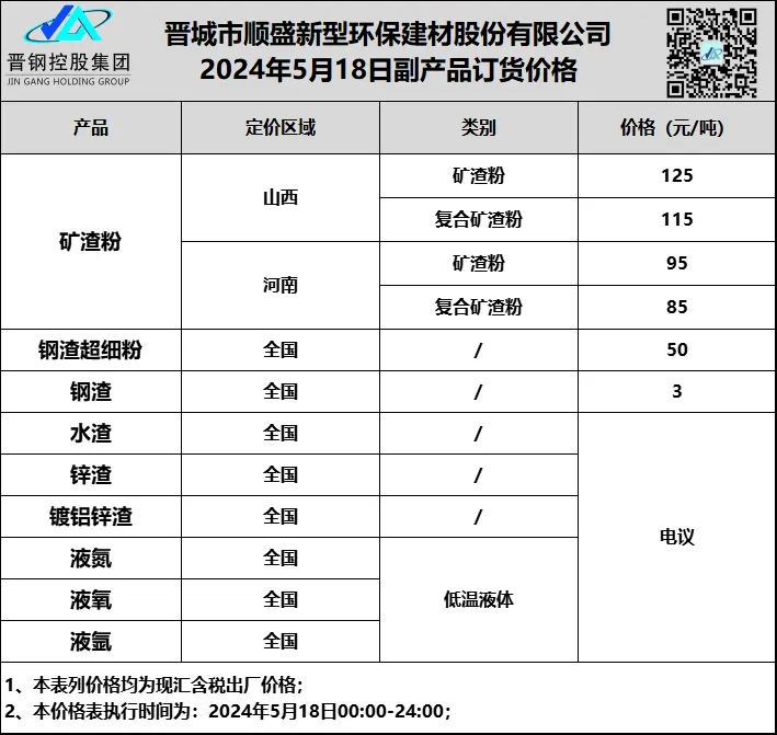 晋钢顺盛矿粉报价