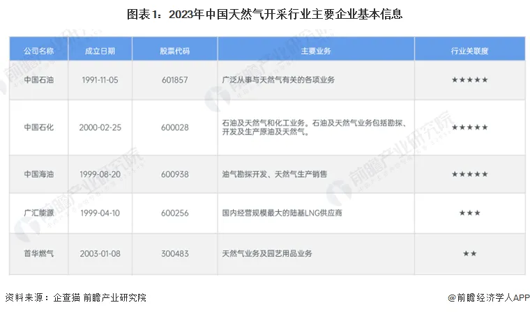 “十三五”以来,我国天然气产供储销体系建设稳步推进,天然气储产量快速增长,“全国一张网”基本成型。天然气开采的上市公司包括:中国石油(601857)、中国石化(600028)、中海油(00883HK)、广汇能源(600256)等。因存在严格的行政准入门槛、资金门槛和技术门槛等,目前,我国天然气开采企业的数量不多,主要公司包括:中国海油、中国石油和中国石化等。