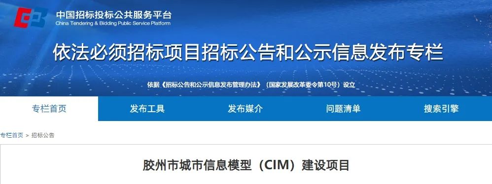 范围:本招标项目划分为1个标段,本次招标为其中的:(001)胶州市城市信息模型(CIM)建设项目;