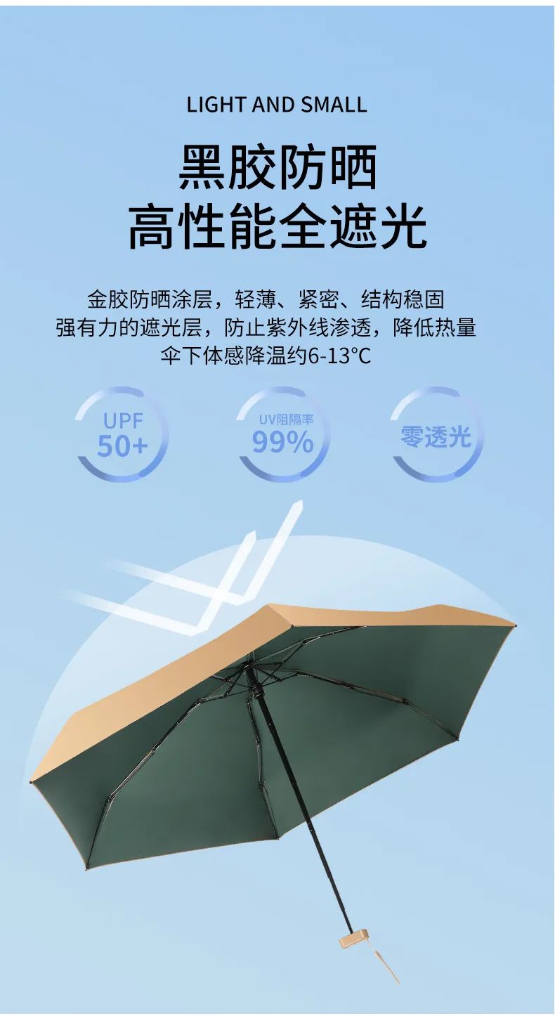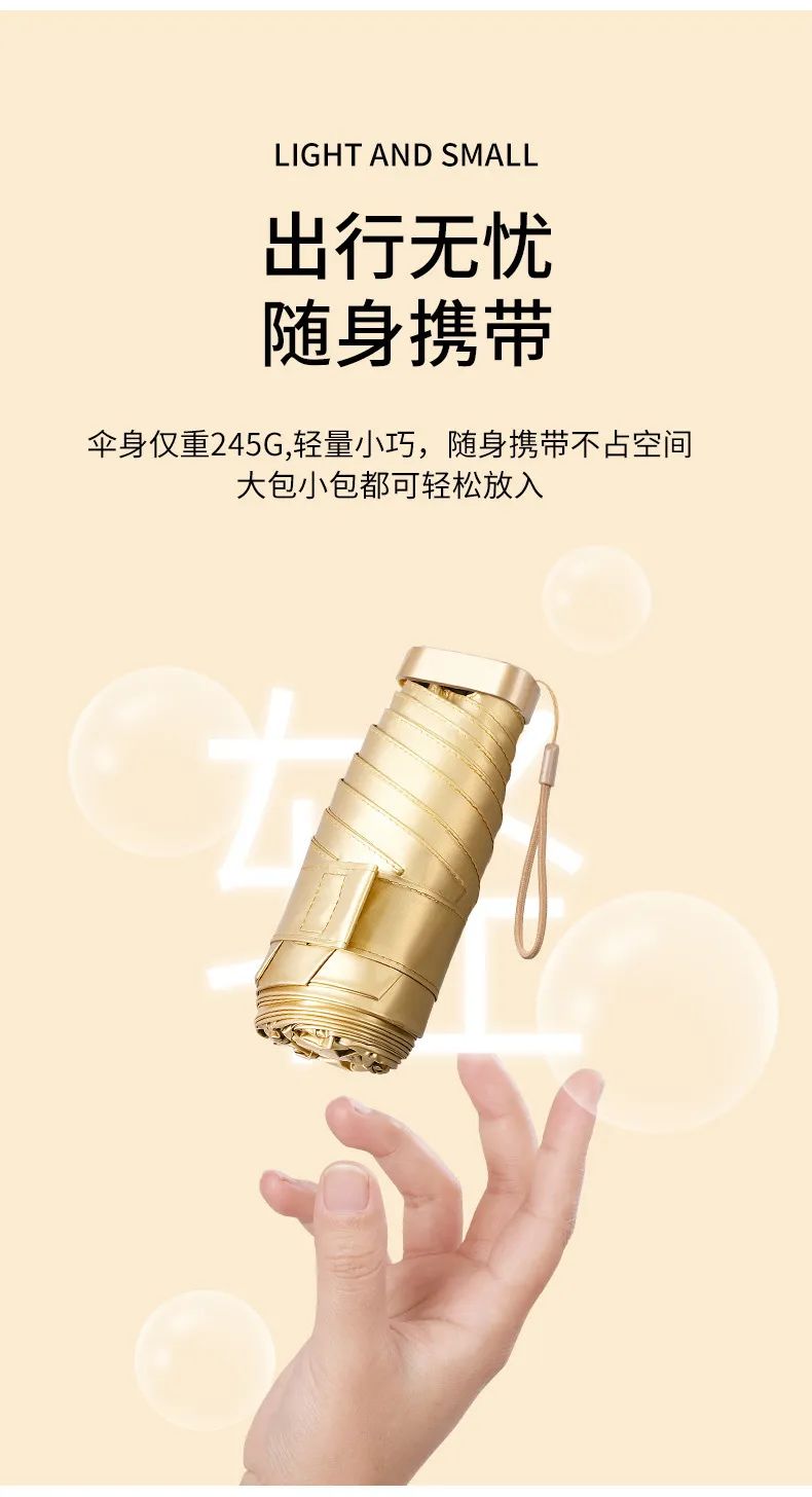 炎炎夏日钻进小金伞下体感温度立马下降7℃左右 在烈日下行走也是满满的清凉感,就像个移动的“小空调” 撑着它去上课、谈生意再也不怕优雅被“晒化”~