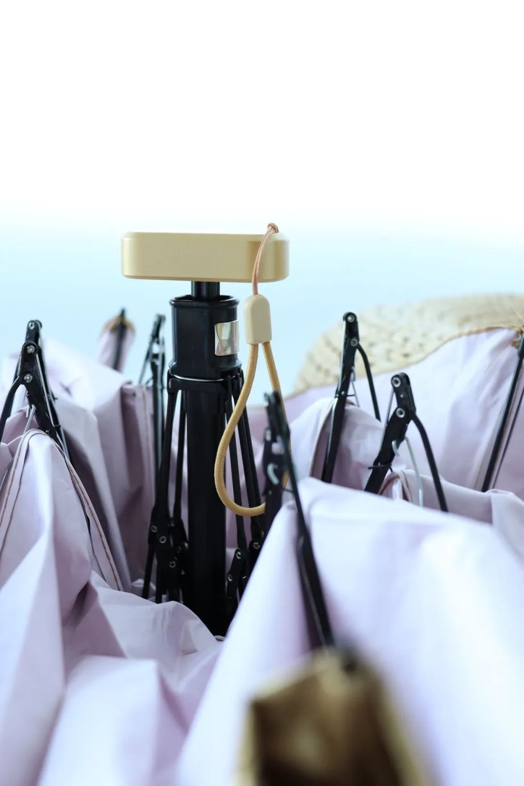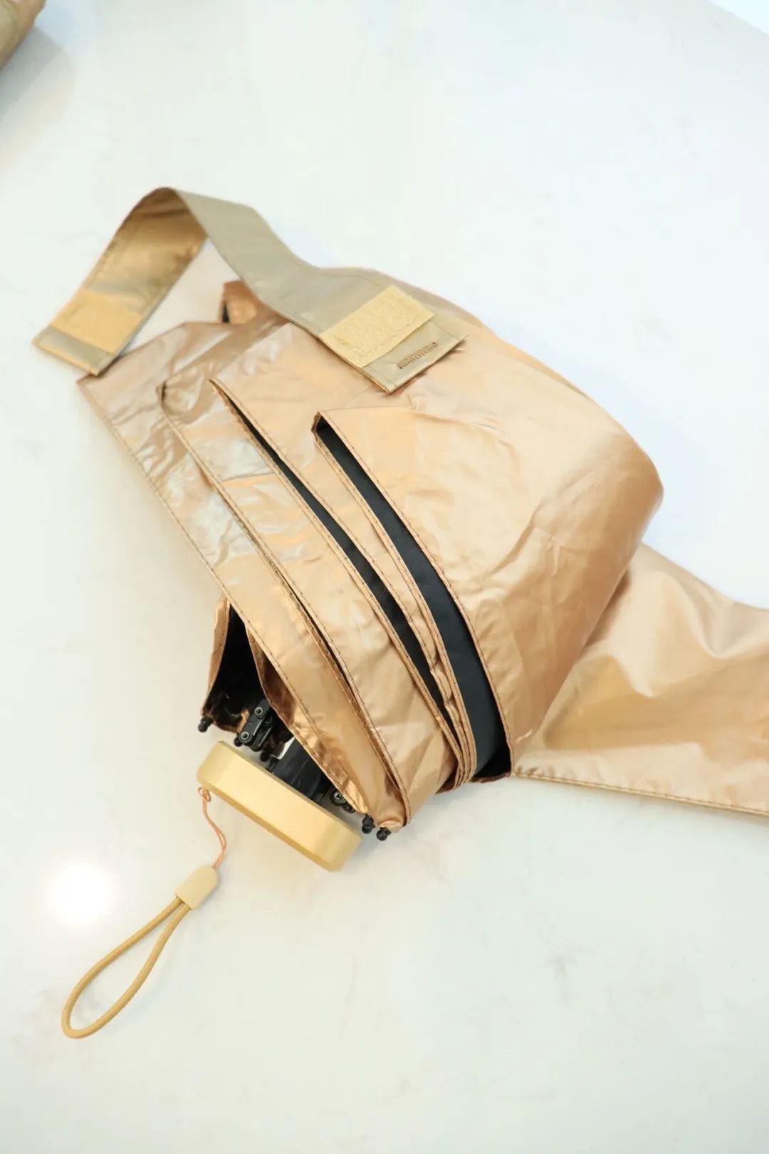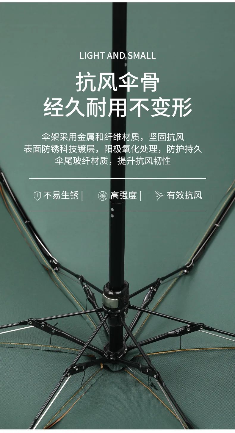 为了最大程度地达到“小而精”的概念 小金伞挑选航空级抗风骨架 采用轻量化的设计,运用蜂巢按钮形设计 将伞骨精简为6根,数量减少25%,减轻伞身重量。