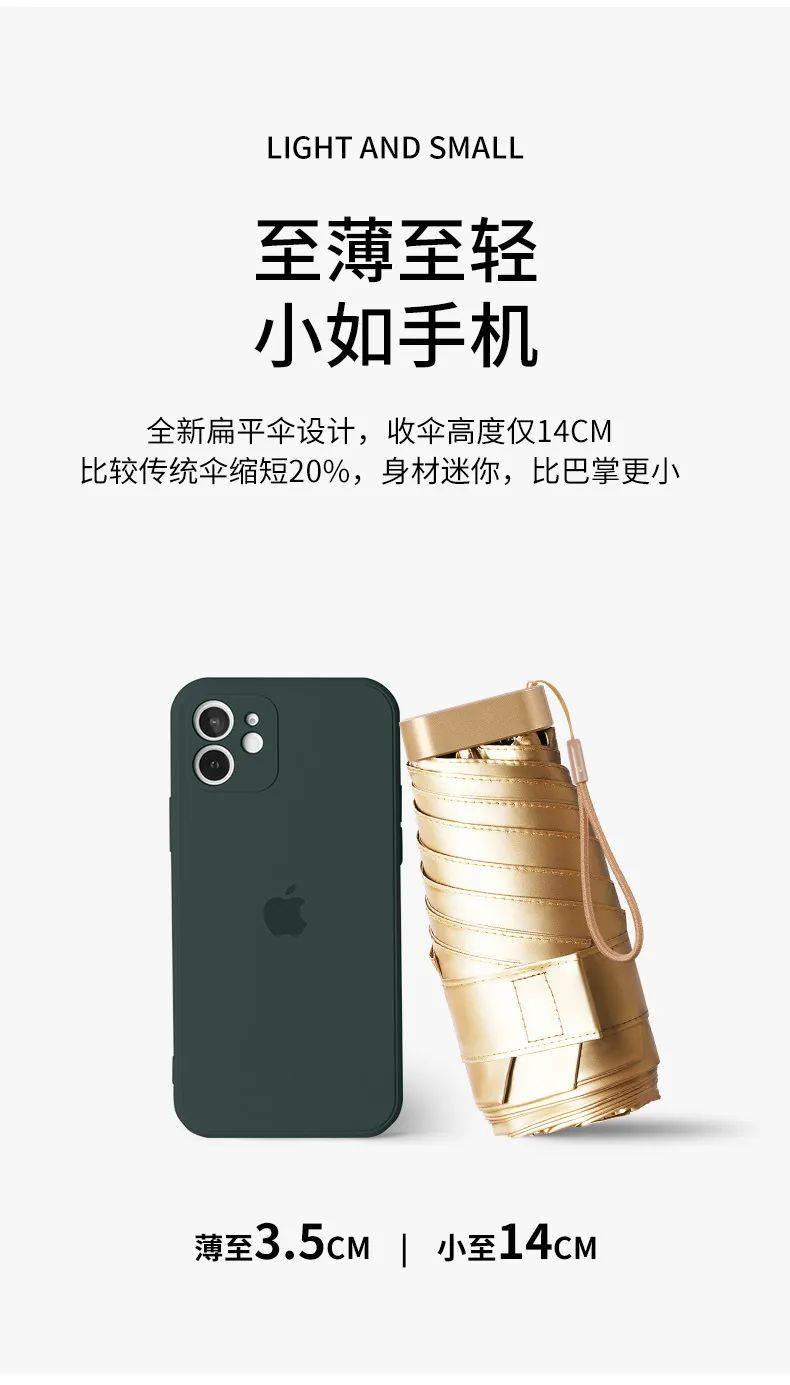 全新六折折伞设计 收伞高度仅14cm 超级迷你,比手掌还小 轻松装包里,便捷易携带
