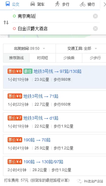 南京南站 → 南京白金汉爵大酒店
