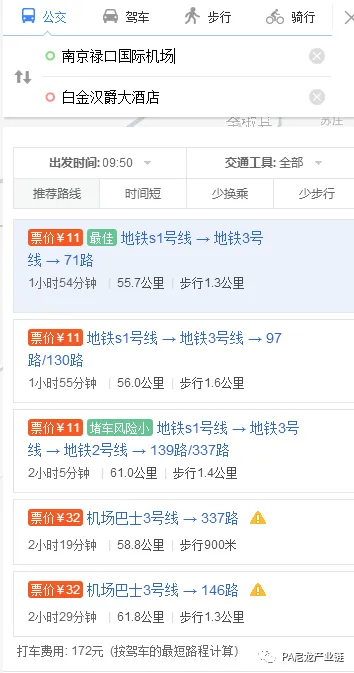 南京禄口机场 → 南京白金汉爵大酒店