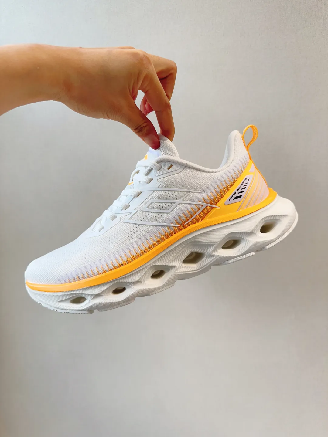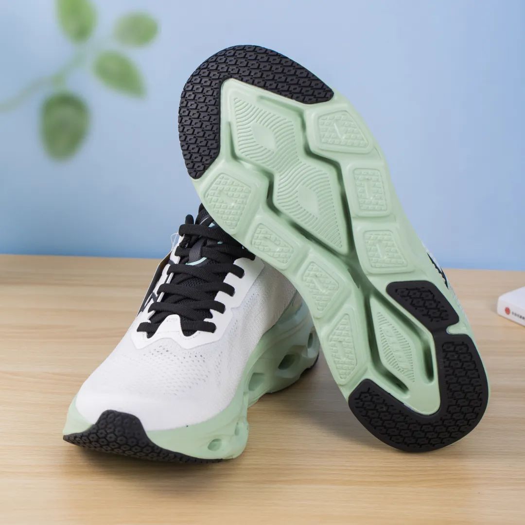 乐途这款跑鞋中层设计了能量环结构,回弹力极强,大大提高跑鞋的缓震性,保护我们的膝盖和双脚。