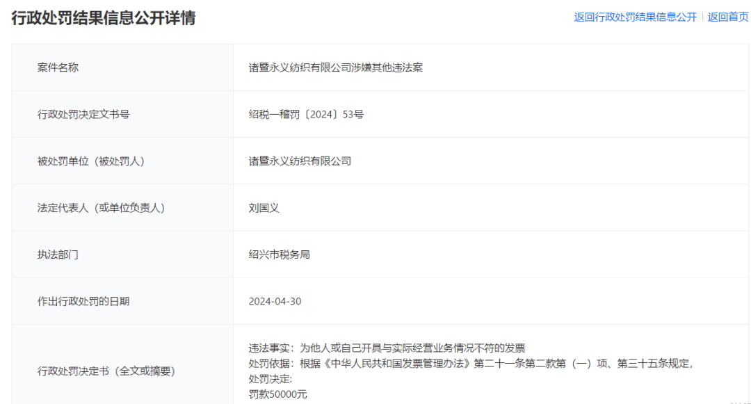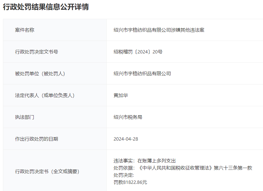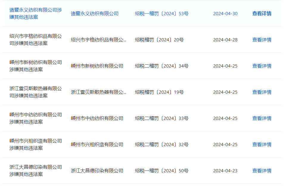 近日,浙江政务服务网公布了多则处罚信息,绍兴多家纺织公司被罚。