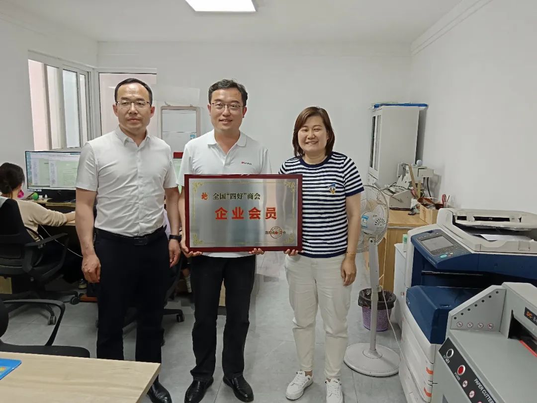 每到一家企业,走访组均实地参观经营环境,详细了解经营状况,仔细沟通面临困境,并由轮值会长齐红飞为企业负责人颁发全国“四好”商会会员单位匾牌。