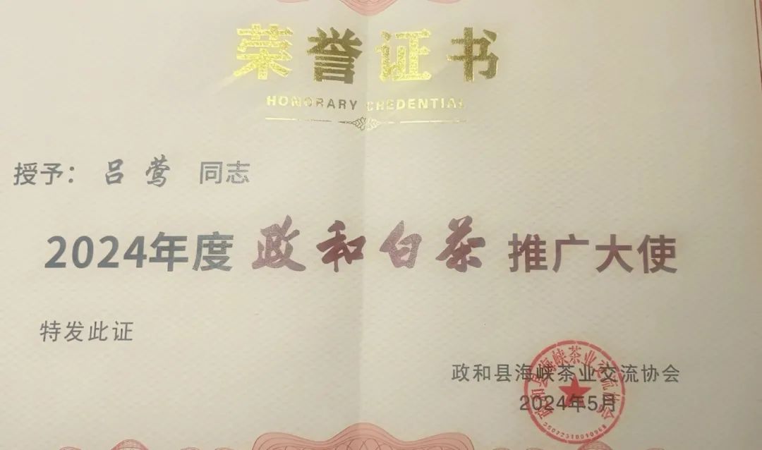 此外,活动还举行了系列颁奖、授牌仪式,福州市政和商会常务副会长兼秘书长吕莺被授予“2024年度政和白茶推广大使”称号。