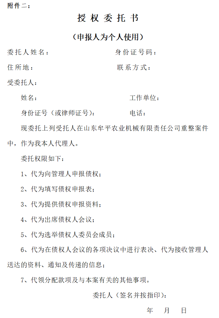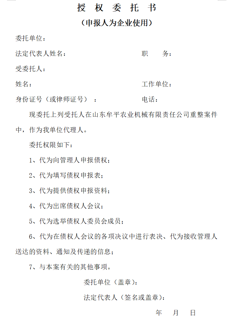 山东牟平农业机械有限责任公司管理人