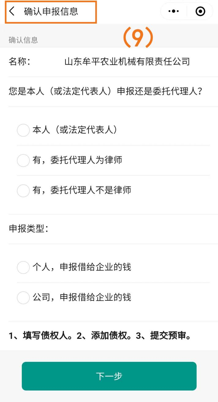 5、进入“确认申报信息”页面(如图序号(9))