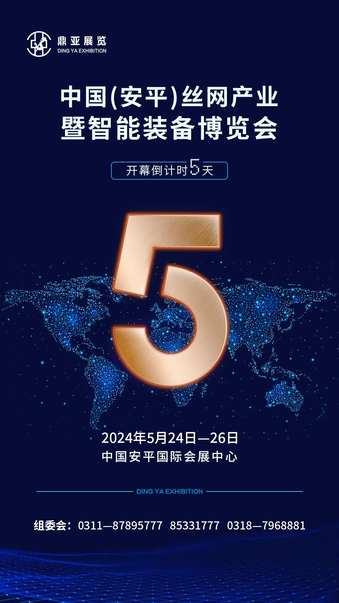 由河北省丝网产业协会主办,河北省工商业联合会指导,河北省工业经济联合会、河北省五金机电商会、河北省紧固件行业协会、河北省焊接技术协会、中华全国工商业联合会城市基础设施商会、衡水市桥联、衡水市国际华商会、河南装备制造业协会振动机械分会、安平高新区投资发展集团有限公司、德州市土工材料协会、定州市五金网业协会、俄罗斯中国河北省总商会、美国加州河北商会、加拿大河北商会、澳大利亚京津冀联合会、亚欧非贸易投资联合促进会、非洲商务联盟、新西兰河北国际商会、德国华侨华人联合会、加纳共和国河北商会、智中经济贸易促进会、智利华商联合总会、中日国际交流协会、全德华侨华人联合总会等海内外单位协办,河北鼎亚展览服务有限公司承办的中国(安平)丝网产业暨智能装备博览会将于5月24日至26日在中国安平国际会展中心举办。本次博览会以“强化特色产业、发展区域经济、促进智能转型”为主题,参展企业涵盖丝网上下游全产业链,致力于促进丝网新产品、新技术的快速应用和迭代升级,助推丝网产业高质量发展。