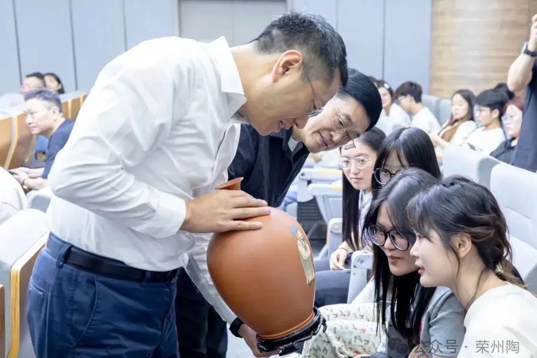 朱霖副院长向学生展示“荣州陶”作品