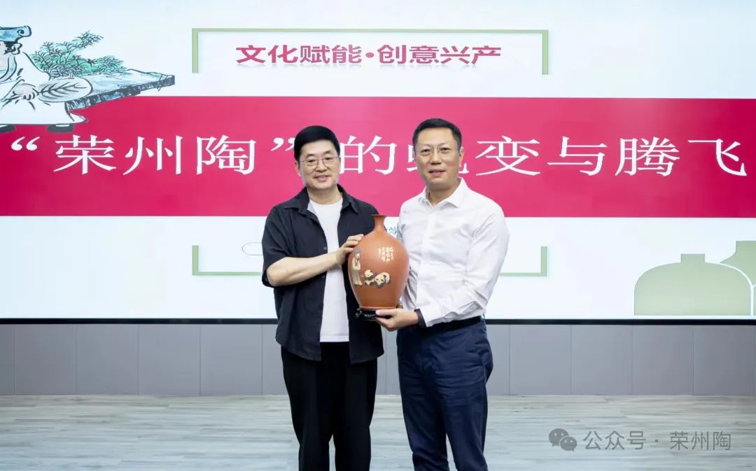 刘勇向四川文化产业职业学院赠送“荣州陶”作品
