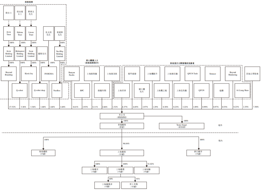 IPO后,趣致集团股权结构