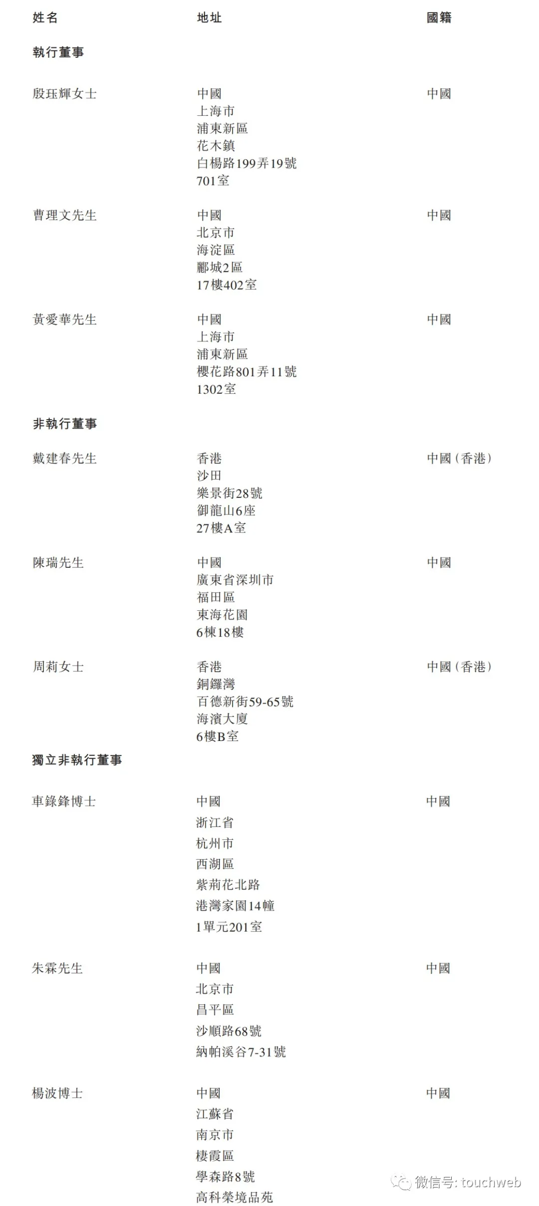 趣致集团执行董事分别为殷珏辉女士、曹理文、黄爱华;非执行董事分别为戴建春、陈瑞、周莉女士;独立非执行董事分别为车录锋博士、朱霖、杨波博士。