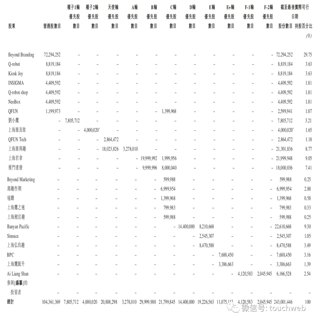 IPO前,张帆旗下QFUN持股为1.07%,刘小鹰持股为3.21%,上海源及致持股为1.65%,QFUN Tech持股为1.18%,上海源与趣持股为8.77%,君联资本旗下上海君拿持股为9.05%,厦门建发持股为7.41%,源趣叁期持股为2.88%,Yeung Man旗下Banyan Pacific持股为9.3%,陈浩华旗下Sinoace持股1.05%,上海弘玖趣持股3.49%,BPC持股3.16%,上海鹰脉升持股1.39%,安吉县财政局旗下Ai Liang Shan持股2.54%。