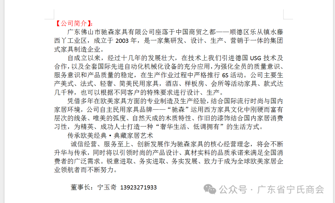 4、广东佛山市驰森家具有限公司董事长 宁玉奇;
