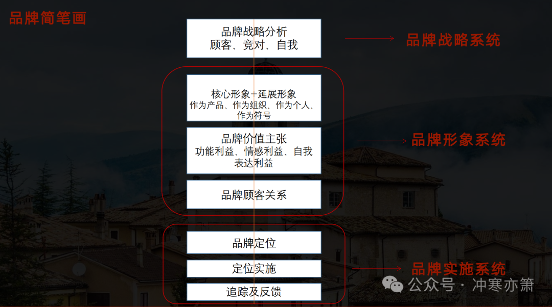 从品牌营销的纵向过程来看,一个品牌总是从战略开始,进而形成包括品牌核心形象、价值主张、客户关系为整体导向的品牌形象系统,再进一步具象为品牌的实施系统并落实在具体的品牌营销建设之中。从这个角度来看,品牌也是一个生命机体的形象,先有大脑、再有四肢或骨架,再从后形成机体的各种行为。