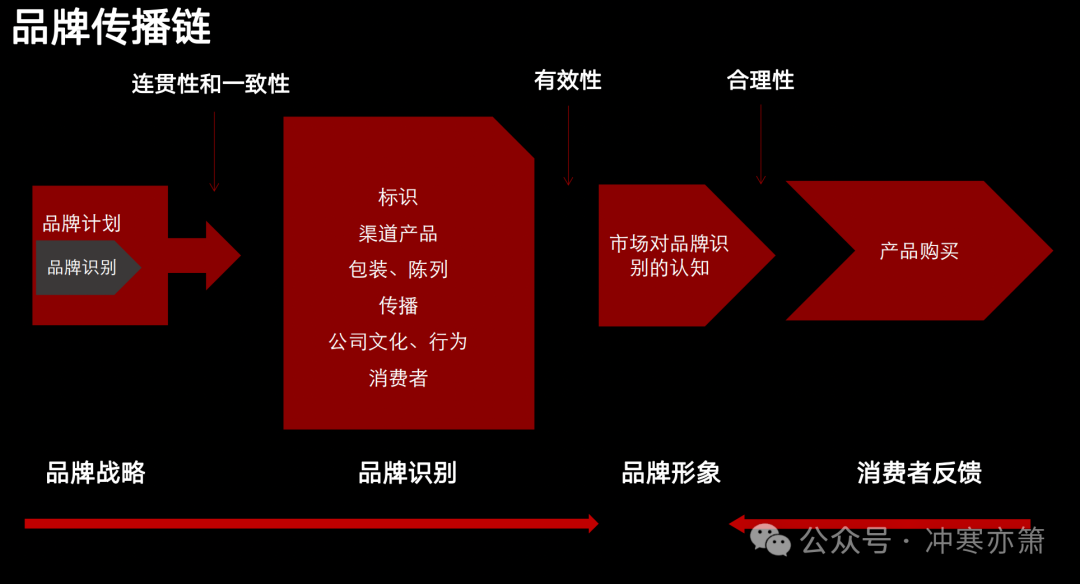 从品牌构建的横向过程来看,一个品牌的诞生可能来自于一个理念(初心),然后通过构建品牌识别形成对理念的表达,再通过匹配时代的沟通方式形成品牌形象,最后转化为与消费者的关系,通过品牌提供的这种产品或服务。这整个传播链的过程重要的是保持品牌识别的连贯性、有效性、一致性和合理性,非常符合生命体的特征:由大脑发出的意识从而通过各种沟通与受众链接。
