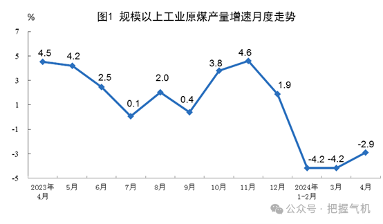 4月份,规模以上工业(以下简称规上工业)原煤、原油、天然气、电力生产总体平稳。