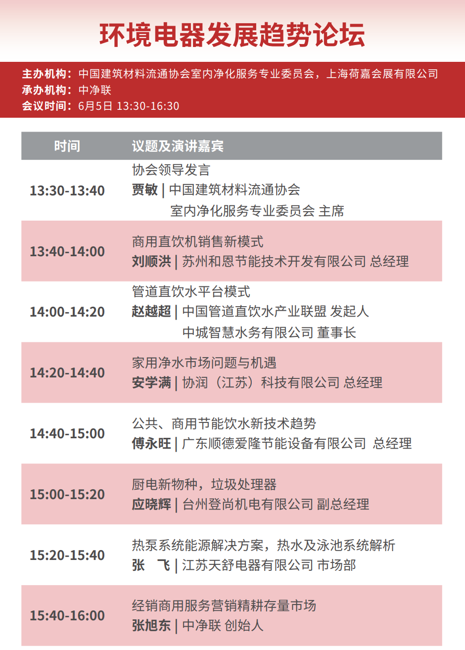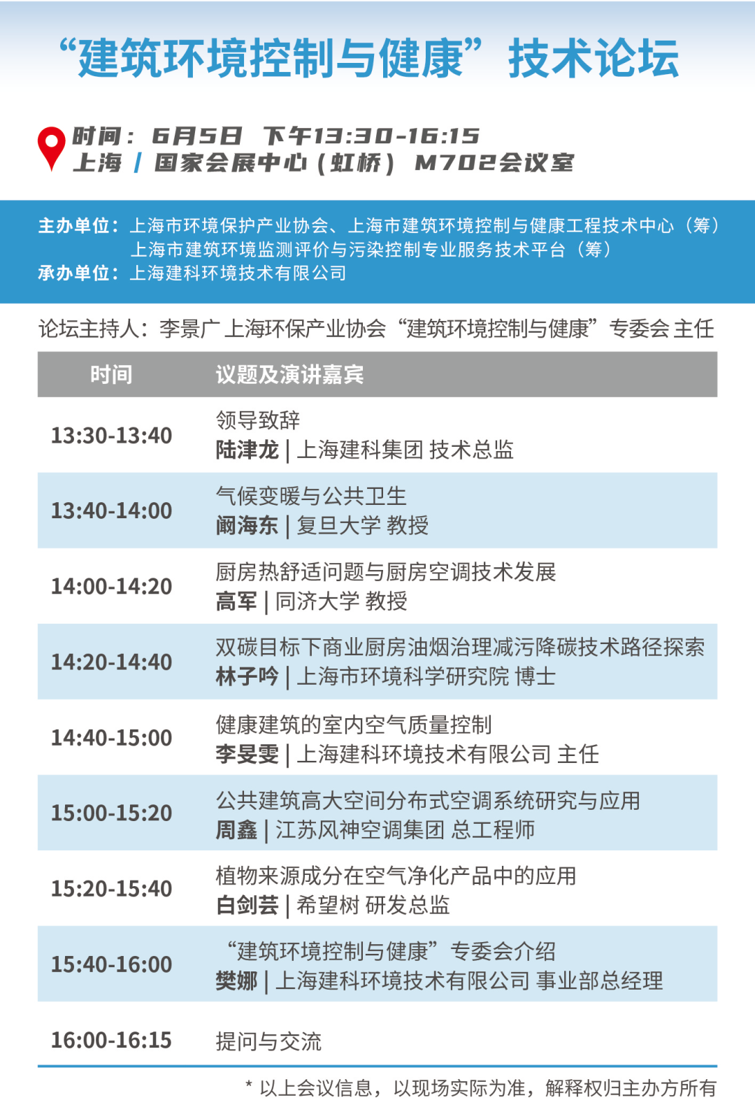 除了产品和技术展示之外,本届世环会【低碳建筑与舒适系统展】期间还将举办多场专业会议、高峰论坛等主题活动,邀请中国疾病预防控制中心环境所原副所长、医学博士、博士生导师白雪涛、山东省家用电器行业协会会长田占军、CSHIA智能家居产业联盟执行秘书长王胜阳、鸿雁智能研究院院长王晓东、同济大学资深教授博导徐文华、中国设备管理协会低碳健康人据环境技术中心主任朱伟、国家绿色建筑质量监督检验中心检测认证部副主任程烜等众多行业专家,通过专题研讨、论坛沙龙、热点解读、趋势分享等形式为业界纾困解惑、分享前沿技术,探讨发展风向,助力行业洞悉市场前景,紧握发展机遇。