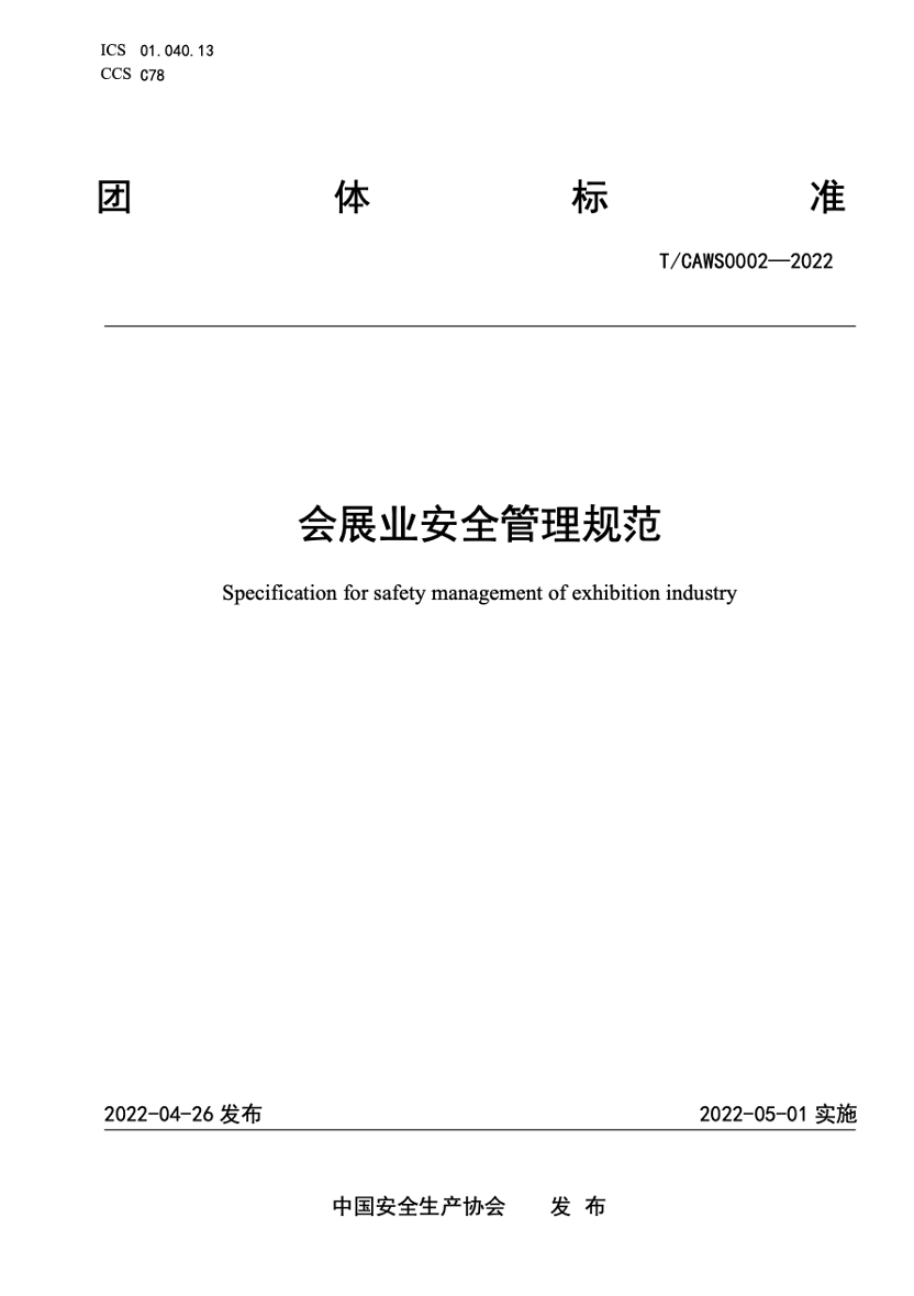 2022年5月1日,随着中国会展业对于会展安全运营的需求和理念进一步提升,中国安全生产协会发布并实施《会展业安全管理规范(T/CAWS0002-2022)》团体标准,会展业进入到安全标准体系化建设阶段。通过专业知识和经验的总结,规定会展安全四个新职业的不同适用范围,约定各类安全责任主体及要求,规范会展的各个环节的安全操作,以确保整个项目全过程的安全责任得以落实。