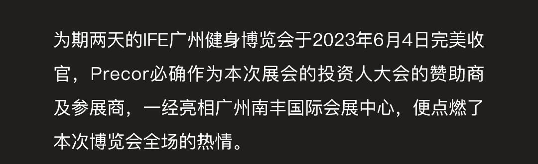Precor必确亮相IFE广州国际健身博览会,用匠心工艺展现科技精神