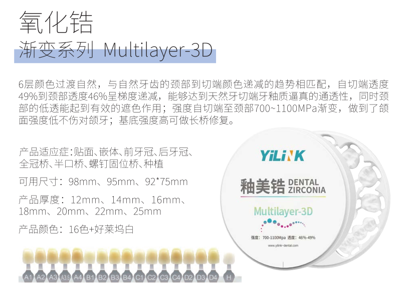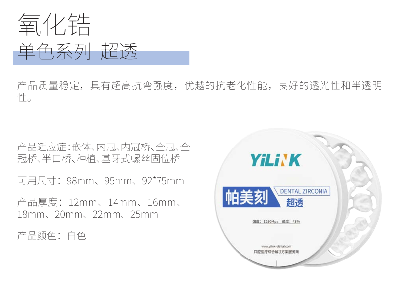 氧化锆材料满足技工端对牙齿加工不同需求的同时,配合上数字化的高效设备,让齿科加工操作便捷,经济高效。