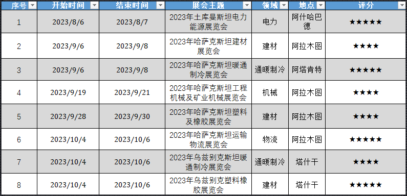 为此,欧亚中心为您精选8-10月中亚展会信息: