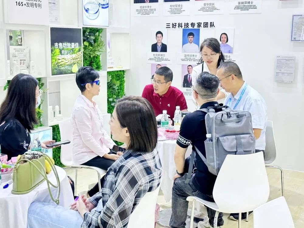 在此次展会上,三好科技带来的产品有「功效护肤」「多样彩妆」「婴童护理」「功效洗护」等这4大板块;其中功效护肤板块吸引了无数业内同行及客户伙伴的关注,众多客户亲临现场咨询,洽谈合作!