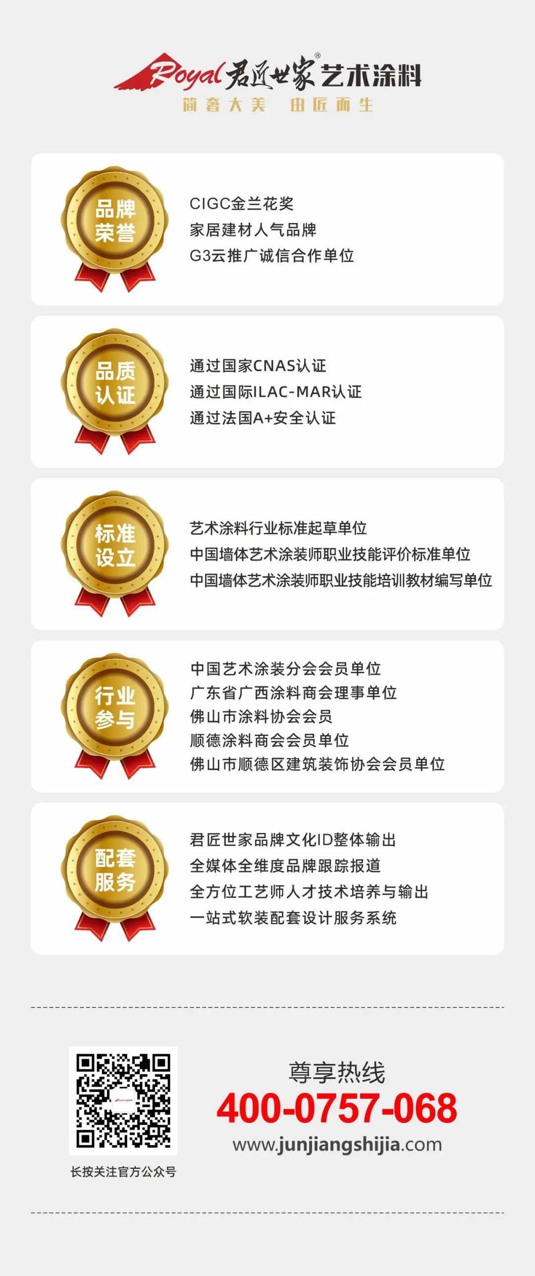 2023年作为君匠世家艺术涂料新的战略起点,将继续秉承匠心精神,以“做更适合中国人的美学艺术涂料”为定位,开启全新征程。