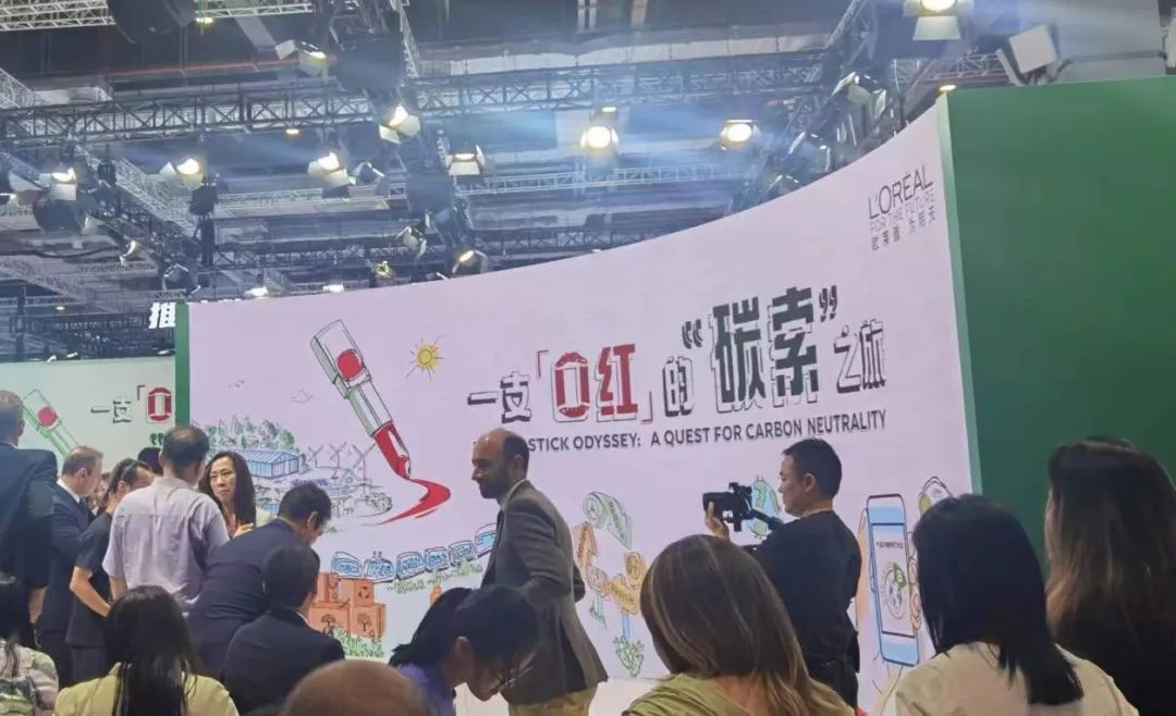 “一支口红的‘碳索’之旅”是欧莱雅带来的主题展览,走进展台,可以直观感受口红这一消费品的减碳路径:在上游,“可持续原料采购”从源头入手降低环境影响;在中游,苏州工厂实现碳中和;在消费端,绿色包装、低碳运输、绿色建筑形成合力,共同推动一支口红完成碳中和。