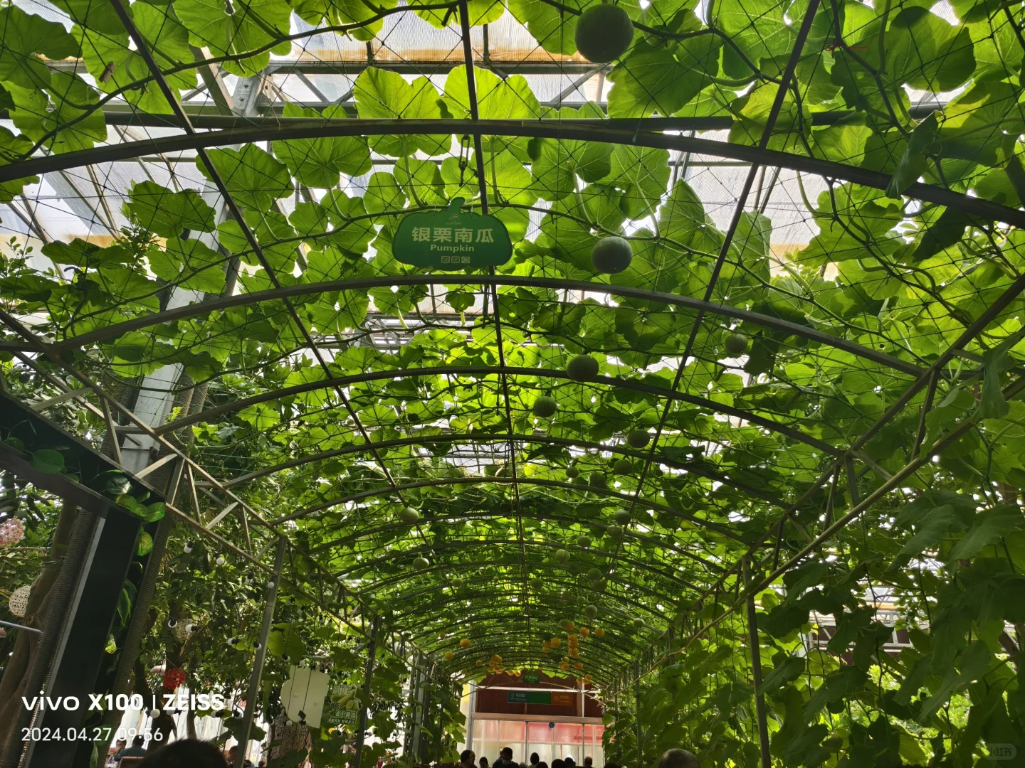 蔬菜硅谷,绿色胜境——第二十五届中国(寿光) 国际蔬菜科技博览会于4月20日至5月30日举办。有机会自驾从青岛去参观了一下,媳妇见了自己好久未见的好朋友,一趟行程下来很开心。\n一、交通工具:自驾从青岛出发,不到两个小时即可到达。\n二、停车事宜:蔬菜博览会南侧有一个奥林匹克公园,里面免费停车,车位充足,并且有交警引导,很方便。\n三、游览:蔬菜科技博览会凭购买的电子门票入场,60周岁以上老人免费。菜博会共有10个场馆,内部有各种蔬菜品种,各种造型的景观小品均由农作物拼装摆放形成,不进让人眼前一亮。果然,劳动人民的智慧是无穷无尽的。金龙、锦鲤的鳞片是由玉米、红豆一粒粒粘贴成的,亭台楼阁是由各色小南瓜砌筑而成。各类农作物真可谓是琳琅满目,新奇的小景让人眼花缭乱。\n四、餐饮:菜博会内有各种小吃,铁板鱿鱼、烤肠、鲜榨果汁等;而且菜博会内有50元一位的自助餐,中午吃饭也可以在场馆内解决。\n五、购物:1.也许每个人心中都会有一小片阳光小菜园吧,所以我也忍不住现场买了几种小番茄种子、黄瓜种子等,价格也算合理。2.现场有菜博会文创产品,可以考虑入手一点作为纪念。3.菜博会内有人参果、各品种黄瓜、西红柿等各种各样的瓜果蔬菜,比青岛的便宜很多。然后在菜博会外面也有小摊贩,价格比场馆内更便宜。\n因为时间比较匆忙,只是简单的陈述了一下自己的所见所闻,略有不详之处欢迎大家补充。总体体验感觉还是很有惊喜的。