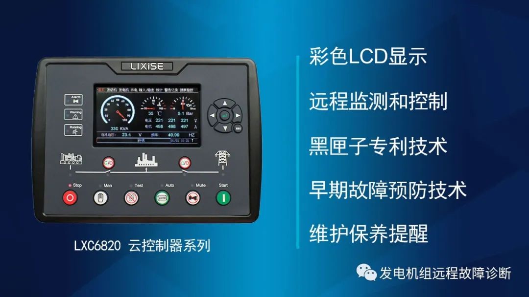 此次展会的明星产品包括LXC66X0云控制器系列、LXC6120、LXC3921、LXC6820彩屏控制器、LXI980-4G数据采集器等。全新的9510并机控制器,具有“三摇”、多发电机组并联运行、远程监控、报警保护以及维护保养提醒等功能。还有全新的LXI990数据采集器。