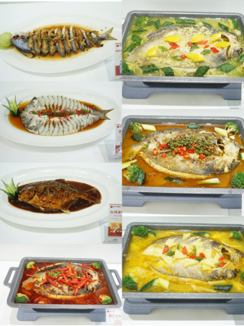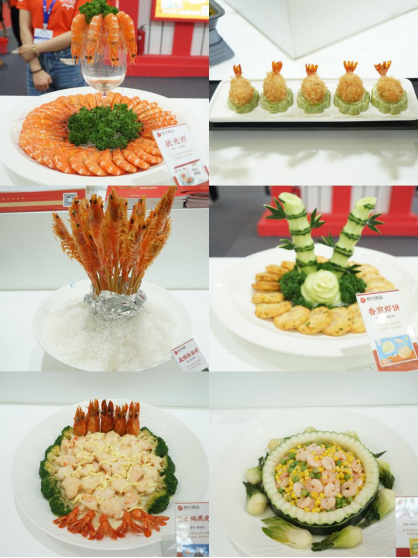恒兴展位布局科学且有层次:新零售体验区、名厨尝鲜区、菜品展示区等,使众多参观者多角度地去了解恒兴食品及旗下产品。展会上,恒兴呈现了多种优质水产食品,包括恒兴鲜虾、霸王烤鱼、菠萝咕噜鱼等100余款预制菜产品,为现场观众提供集“赏、闻、尝、谈”全方位沉浸式体验。开展不到半小时,恒兴名厨尝鲜区已人潮汹涌,现场加工制作的水产美食阵阵飘香,吸引众多海内外餐饮商家和年轻消费者驻足围观。