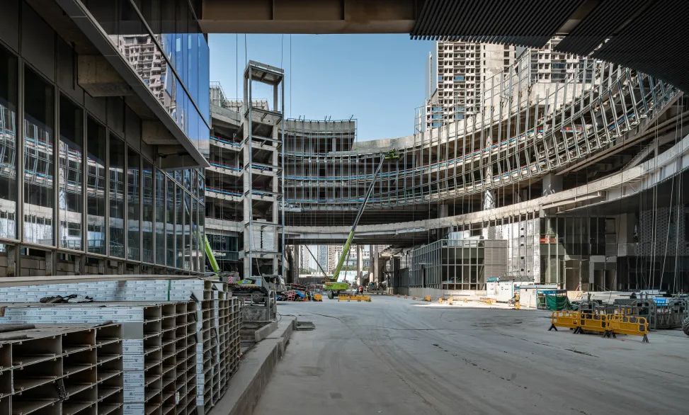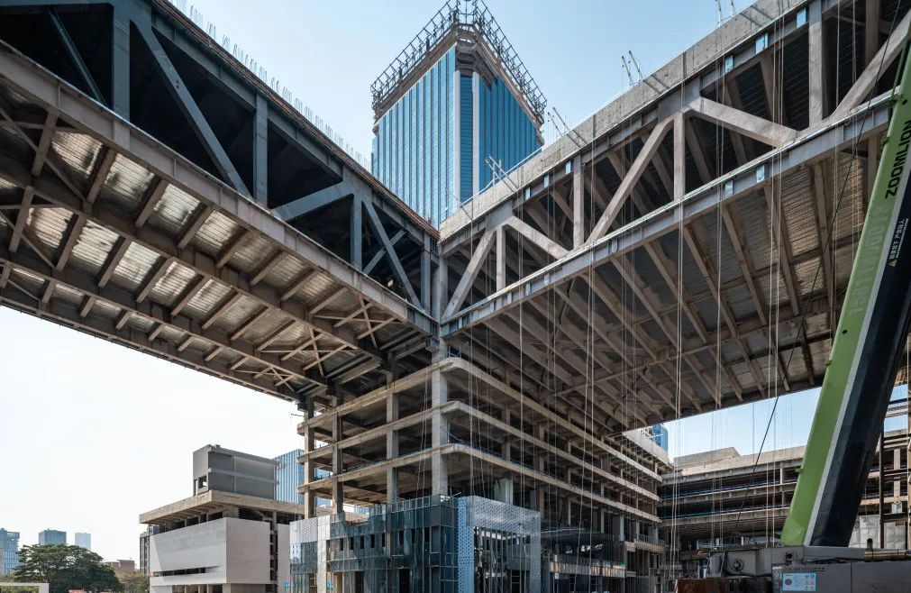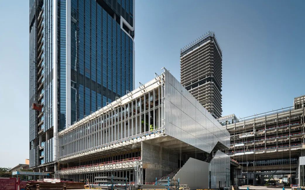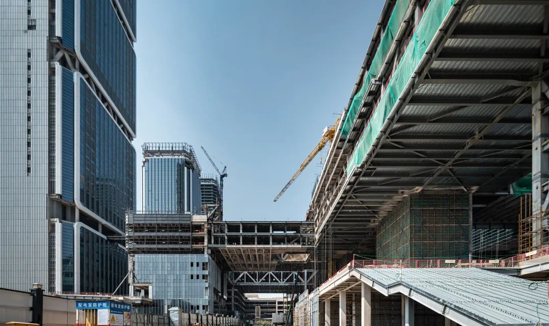 南山科技创新中心地处深圳市南山区留仙洞总部基地的核心位置,将被打造成深圳创新产业新高地,对深圳实现十四五规划中“广深科技创新走廊”具有重要意义。今年2月,“回字形”钢结构连廊顺利合龙,标志着该项目东西两个标段合二为一,工程建设迈入新阶段。近日,HPP探访施工现场,带大家共同走进这座“都市巨构”。