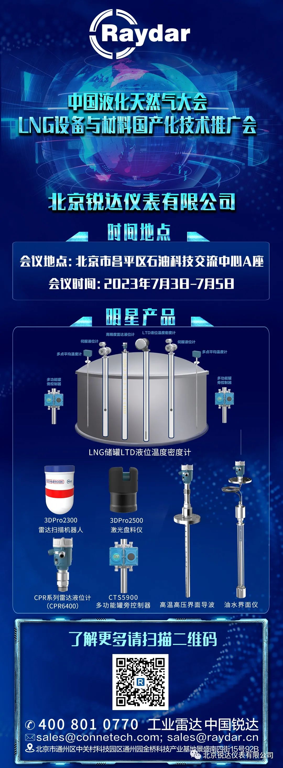 从过滤到液化以及集输,LNG行业仪表应用的挑战是复杂而多变的,对成本的控制且确保最高的安全和环境标准是一以贯之的要求。锐达的工程师们具有丰富的实地应用经验,我们了解液化天然气化工行业应用的复杂性,也善于和客户一起工作以做出满足应用要求、降低成本确保安全性的产品技术方案。并且随时准备为客户提供仪表选型的建议,为客户解决物位测量难题。时间:2023年7月3日-7月5日