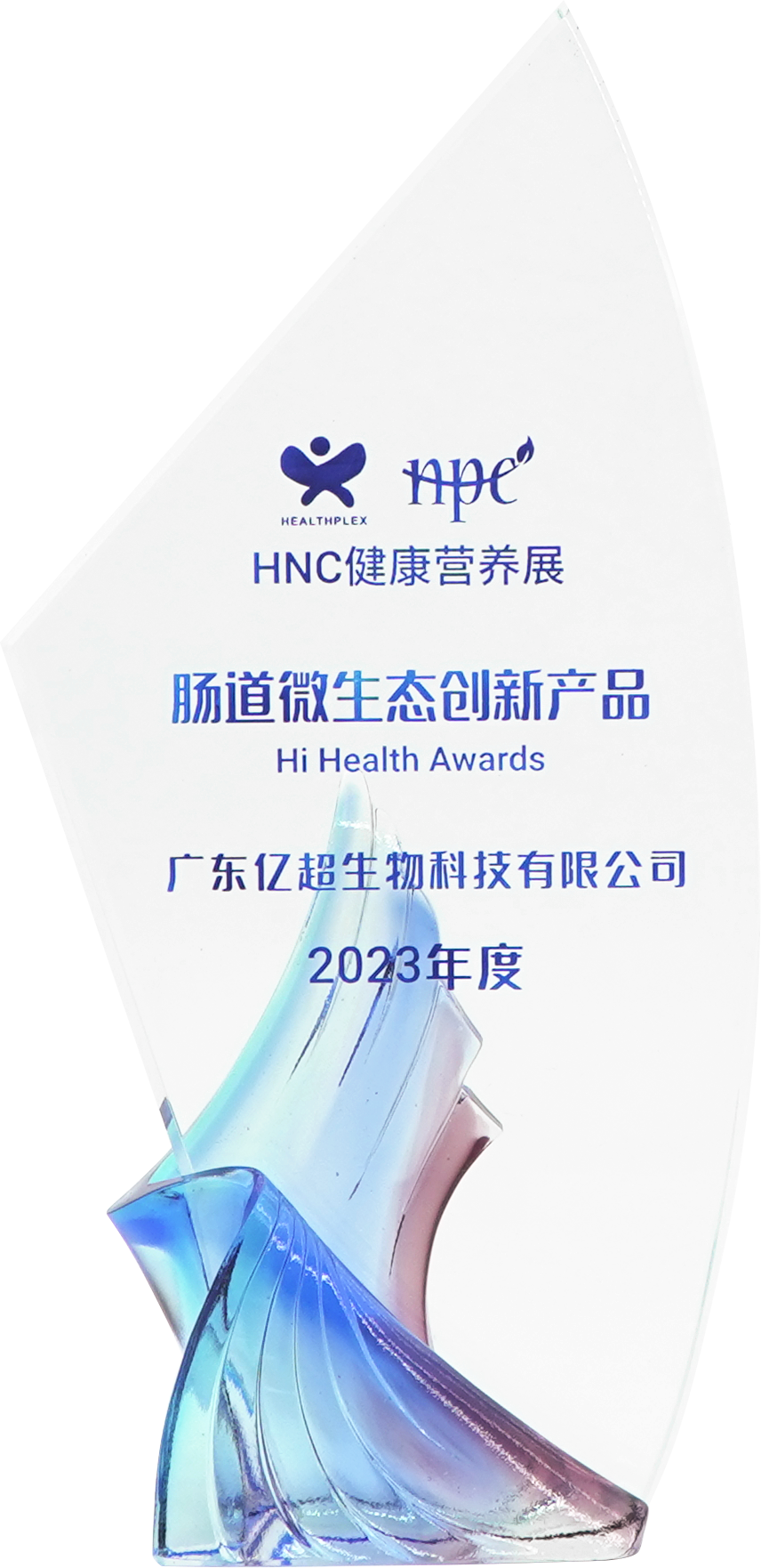 在“Hi健康-仲夏之夜”答谢晚宴颁奖环节中,亿超健康凭借肠道健康创新配方与剂型应用方案荣获“肠道微生态创新产品”。