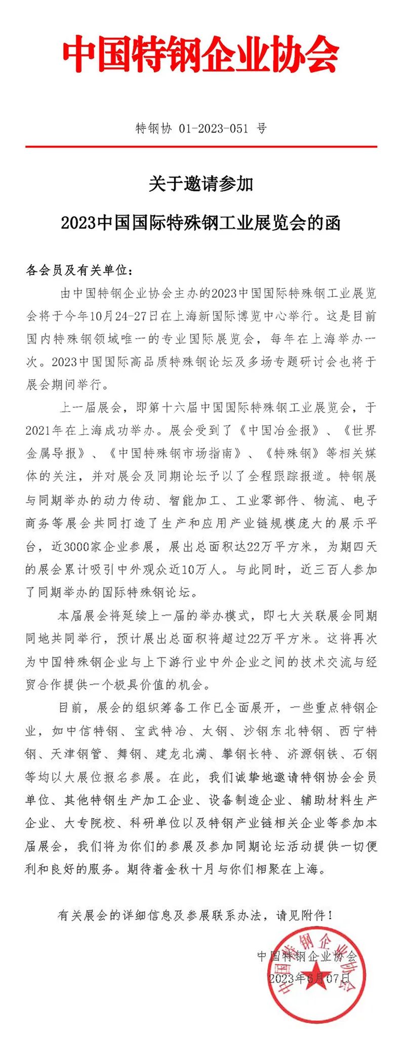 附件:2023中国国际特殊钢工业展览会基本信息及参展联系办法