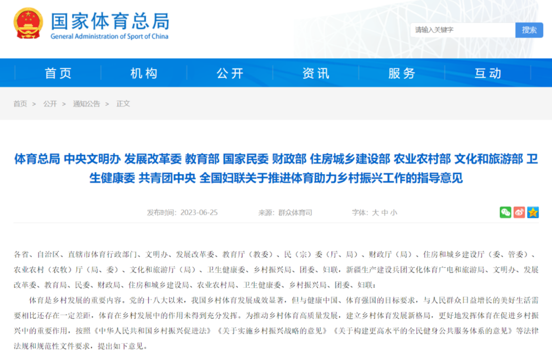 国家体育总局等十二部委协力推进